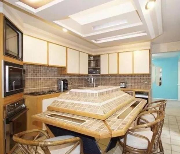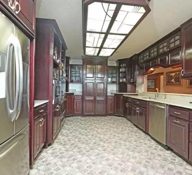 这个把厨房里的橱柜都做成这样真皮的柜门的,也是很让人费解……