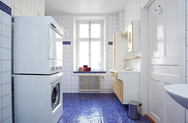 地板贴了呼应整体明亮欢快,白色了立面柜后面搭配了色彩的花砖背景,给人一种视觉冲击感。