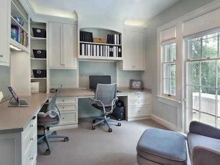 书房的纱窗让室内光线变得温和,几株绿植让空间十分清新。